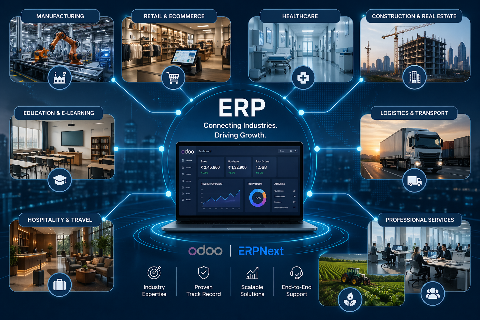 Every industry has its own workflows, compliance rules, and operational headaches. Generic ERP setups ignore these differences. We don't.