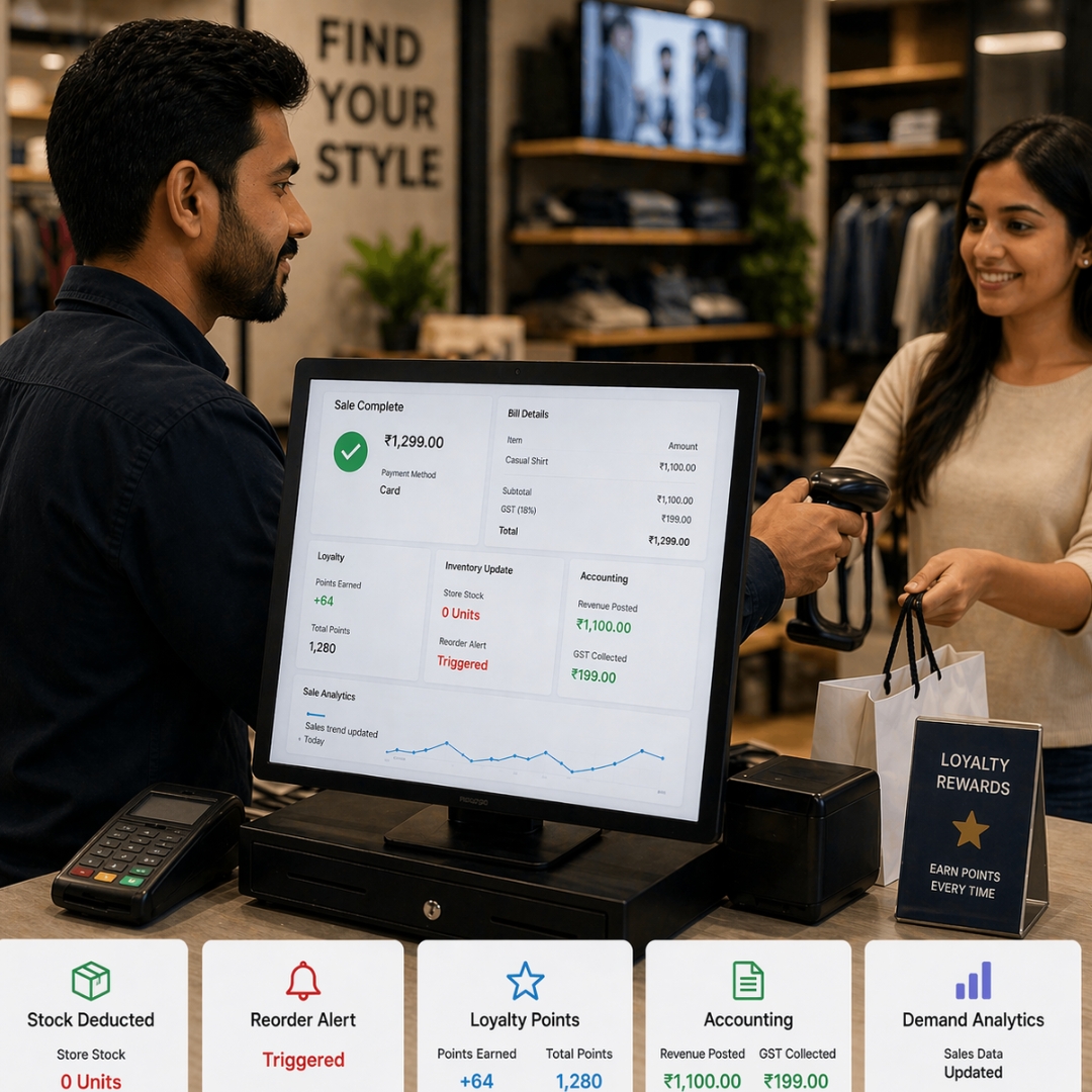 Here is a number that should bother every retailer: Indian retail businesses lose an estimated 3 to 5% of revenue to inventory inaccuracy alone. That is not theft. That is not markdowns. That is stock that your system says you have but your shelves say you don’t, or stock you ordered twice because nobody could see what was already in transit. For a retailer doing ₹10 crore in annual revenue, that is ₹30 to 50 lakh disappearing into the gap between what your POS says and what your warehouse knows. Multiply that across 5 stores, add an online channel, and the number gets ugly fast. The root cause is always the same: disconnected systems. Your POS captures sales. Your accounting software (probably Tally) captures finances. Your inventory lives in Excel or in someone’s head. Your e-commerce platform has its own stock count. Your wholesale orders go through WhatsApp. Nothing talks to anything else, and the gaps between systems are where your money leaks.